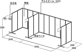 Aタイプ 1小間 294,000円 (間口3m×奥行き3m×高さ2.5m) Bタイプ 1小間 189,000円 (間口3m×奥行き2m×高さ2.5m) |