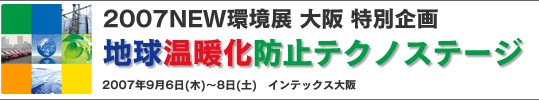 そこで、これらの技術やシステム・製品・サービスなどを一堂にあつめた「地球温暖化防止テクノステージ」(2007NEW環境展大阪内)を9月6日から8日までインテックス大阪で開催する運びとなりました。環境・エネルギーに関するお取り組みを広く周知するとともに、大阪・関西経済における産業振興の一助となるよう、努めて参ります。地球温暖化防止に関わる新たなビジネス、"創産業"のきっかけとして、同展を是非ご活用くださいますよう、企業、団体、大学等のご参加を何卒よろしくお願い申し上げます。