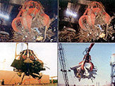 グラプル(Grapple)&バケツ(Bucket) グラプルとバケツは各種クレーンの先端に装着され、人力で処理する事が難しい形状・量・大きいバルク状態の貨物(古鉄、廃紙、原木、石炭、鉄鉱石、穀物、ソーダ灰、硅砂、砂等)を大量に、又安全に運搬するのに使用する。 古鉄、廃紙運搬車輛に装着されている小型クレーン、又は堀削機に装着して使用する小型もあるし、製鋼工場、都市ゴミ焼却場等でのオーバヘットクレーンに装着して使用する中型もあると共に港湾で船舶荷役用に港湾クレーンに装着して使用する大型もある。 最近ではクレーンから電気のみを供給するだけで本体にある油圧装置とシリンダーの力を利用して開閉する電気油圧式及び電気供給が難しい船舶クレーン等の場合は本体に内装されているエンジンをリモコンで始動して、油圧装置とシリンダーの力で開閉する無線調整式等が多く使用されている。