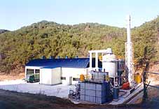 ■出品製品名 *中型規模焼却施設 焼却形式:下向式乾類焼却施設、焼却能力:200〜3,000kg/hr ■特長 *廃棄物と乾類用空気を全部、上部から投入して上部に熱分解が遂行されて、生成された可燃性ガスは下部へ流動して温度が高いChar層を通過する高能率の焼却方式。 *高発熱量の産業廃棄物から低発熱量の一般廃棄物まで広範囲に適用可能で高効率です。 *ダイオキシンなど、有害ガスの排出を最小化できる準乾式洗浄器と濾過集塵器を大気汚染防止施設で採用しています。 *施設投資費用及び設置施設が少ない。